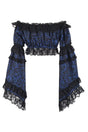 Blue & Black Brocade Flare Sleeve Peasant Top