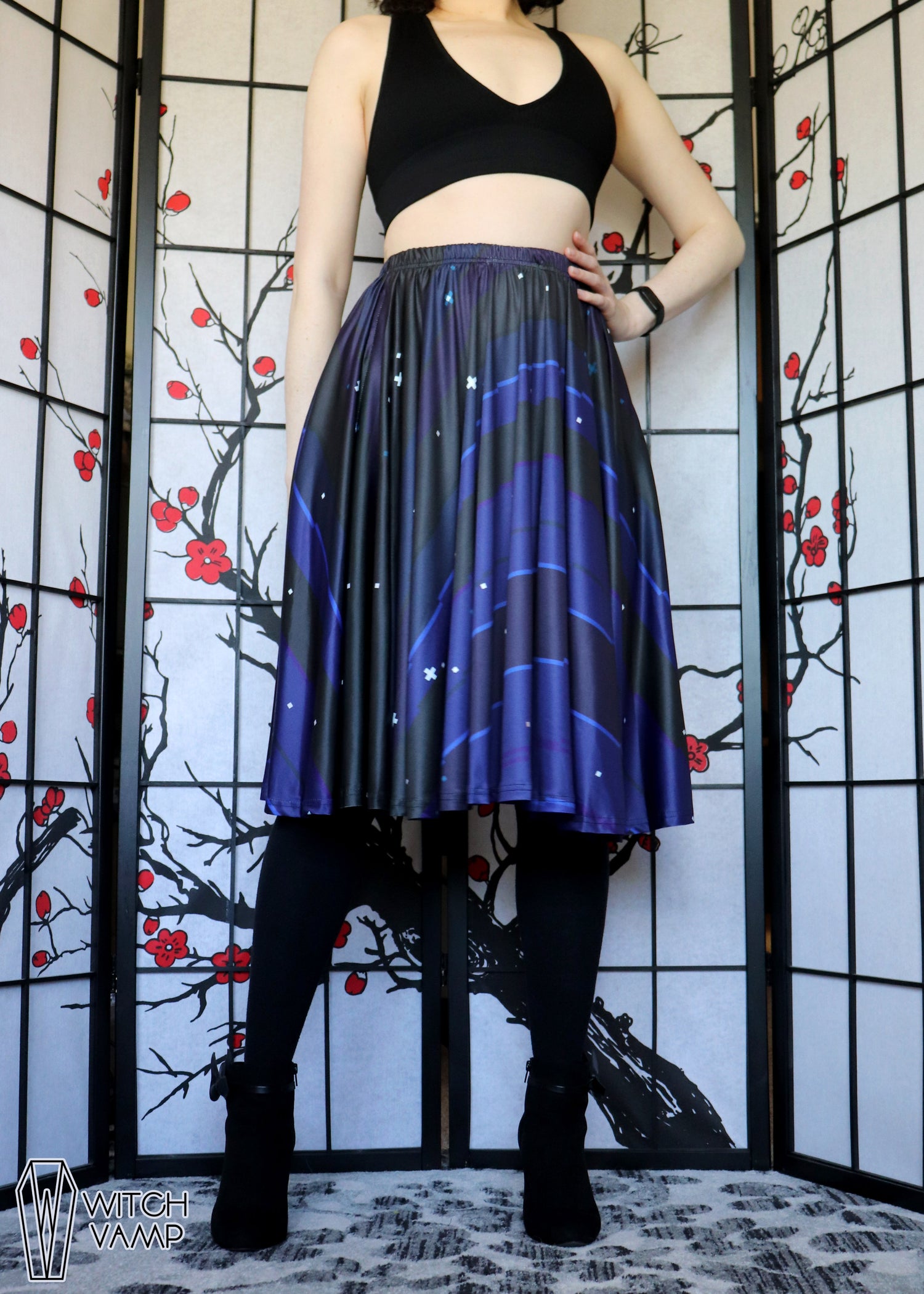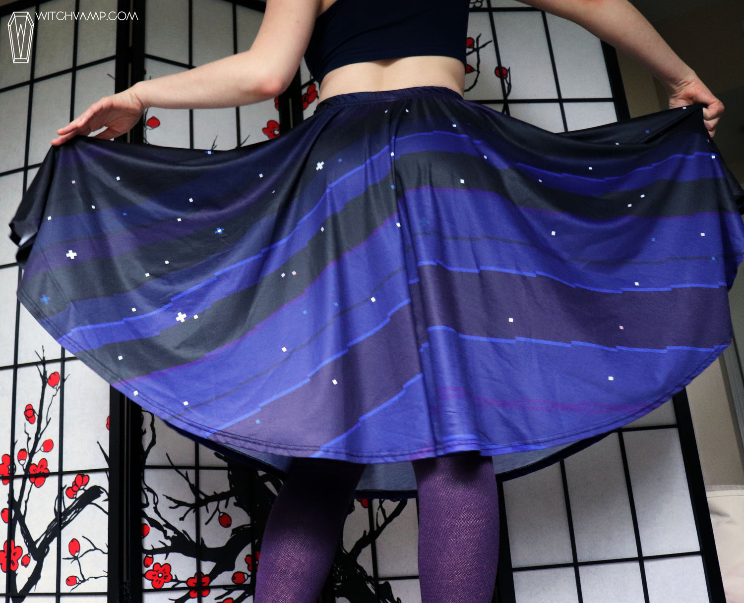 Pixel Night Sky Midi Skirt With Pockets (A Size Only) - A Size (XXS-MD) is backordered and will ship as soon as it is back in stock.