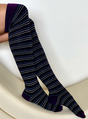 "Bernadette" Plum Striped Over The Knee Socks