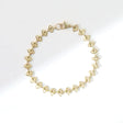 This golden Evil Eye bracelet consists of a strand of connected evil eyes plated in 16kt gold.  The Evil Eye has a storied history in many countries as a warder of evil and negativity. It is a good luck charm and thought to turn away any ill wishes directed towards you.