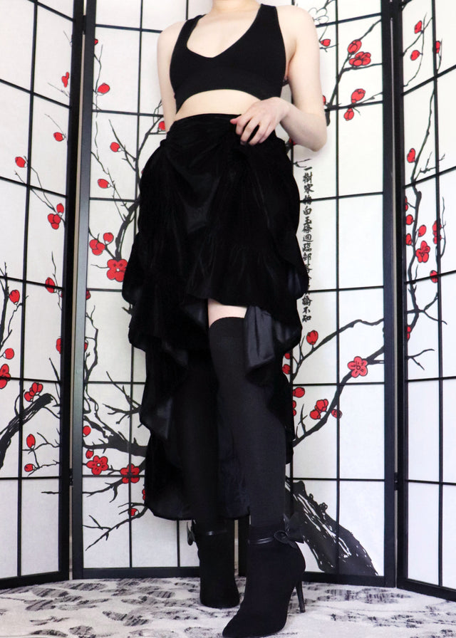 Black Velvet Adjustable Front High-Low Bustle Skirt