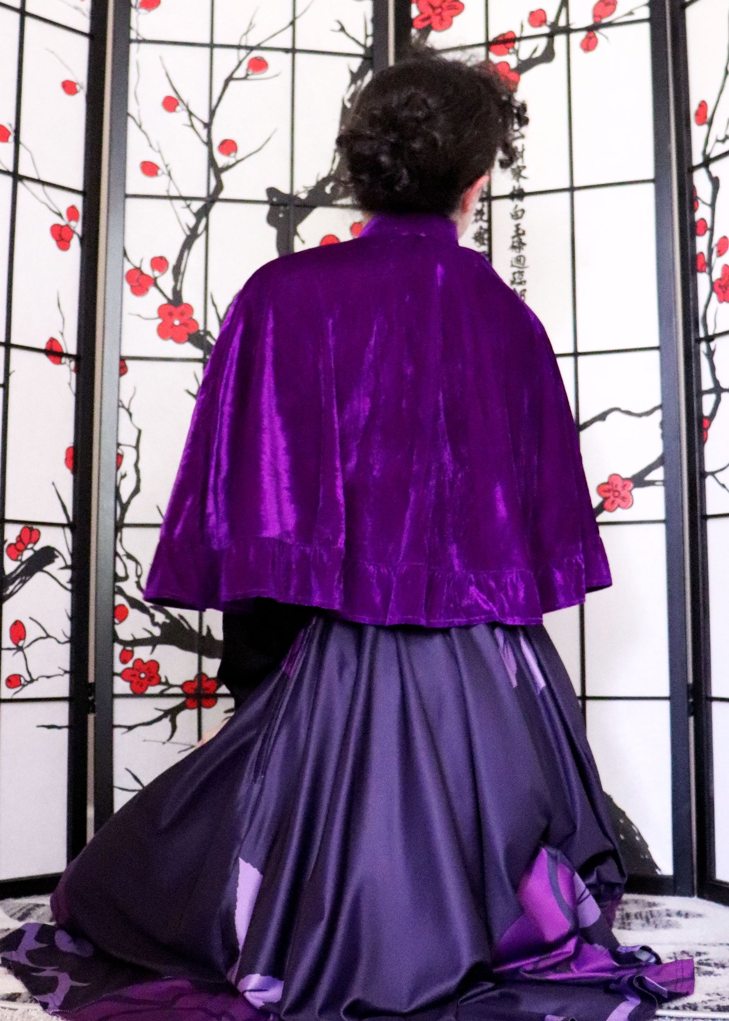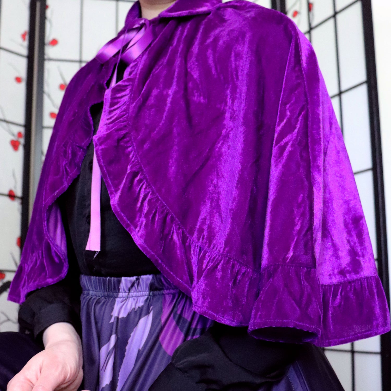 Purple Velvet Ruffle Cape is backordered and will ship as soon as it is back in stock.