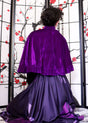 Experience elegance with Daisy Corsets' Purple Velvet Ruffle Cape. This unique piece features a ribbon tie at the neck for a customizable fit.