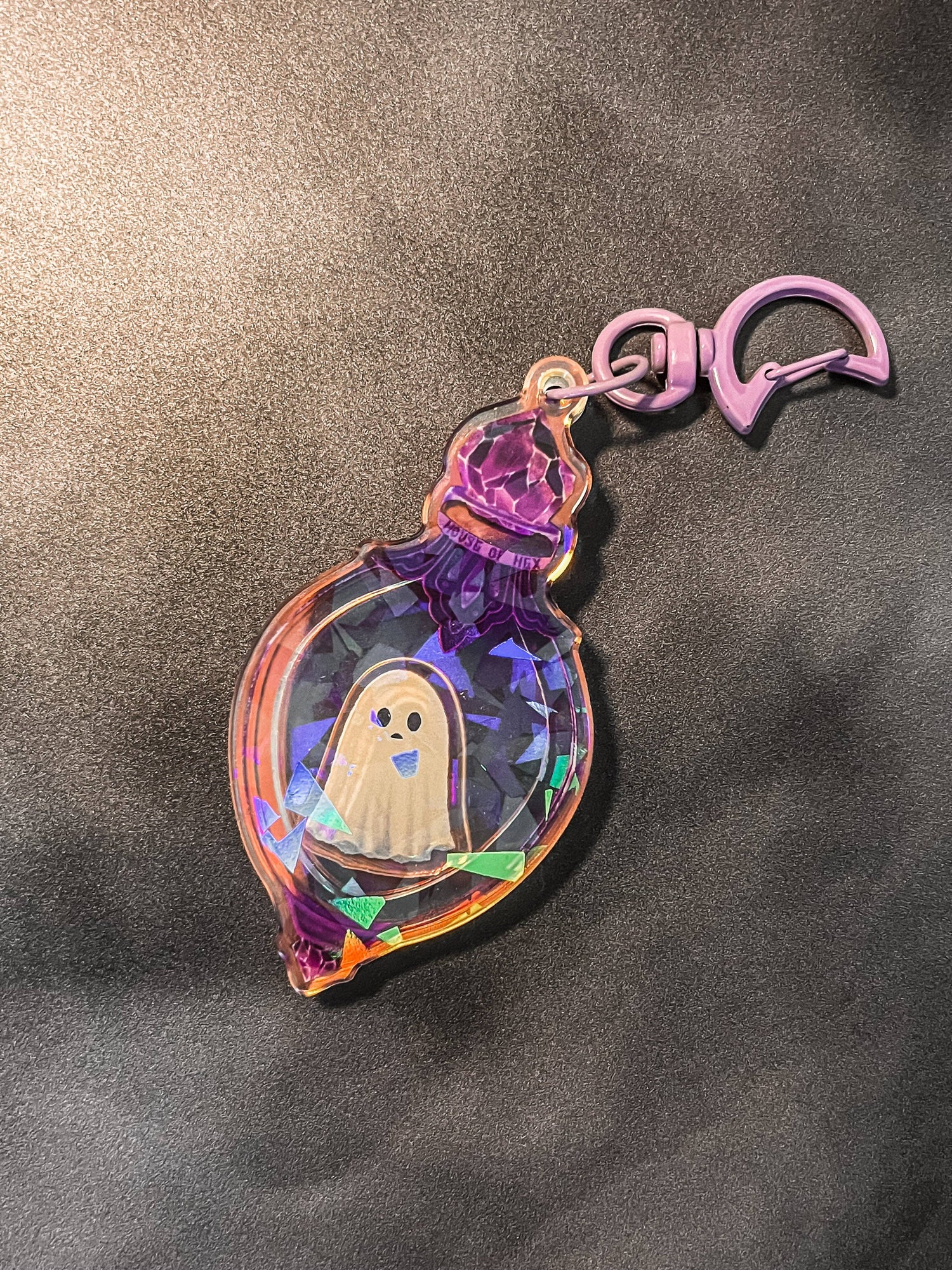 Let's go ghost hunting! Capture the supernatural with this Ghostie in a sparkling Crystal Jar Keychain. Whether you're unlocking doors or embarking on new journeys, our whimsical keychains are your perfect companions.