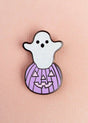 Boo! Glittery ghosts on a purple pumpkin pin? Yes please...