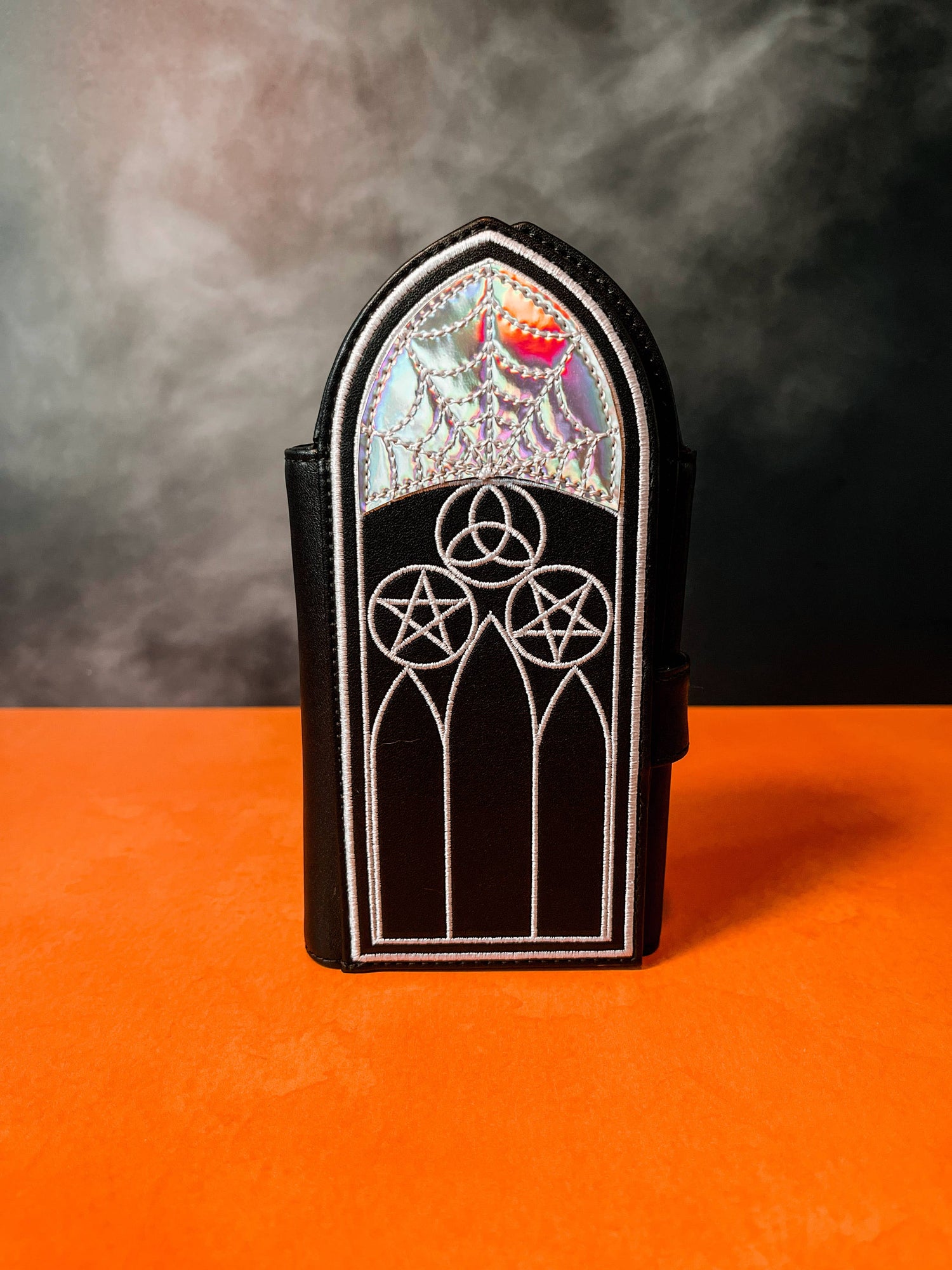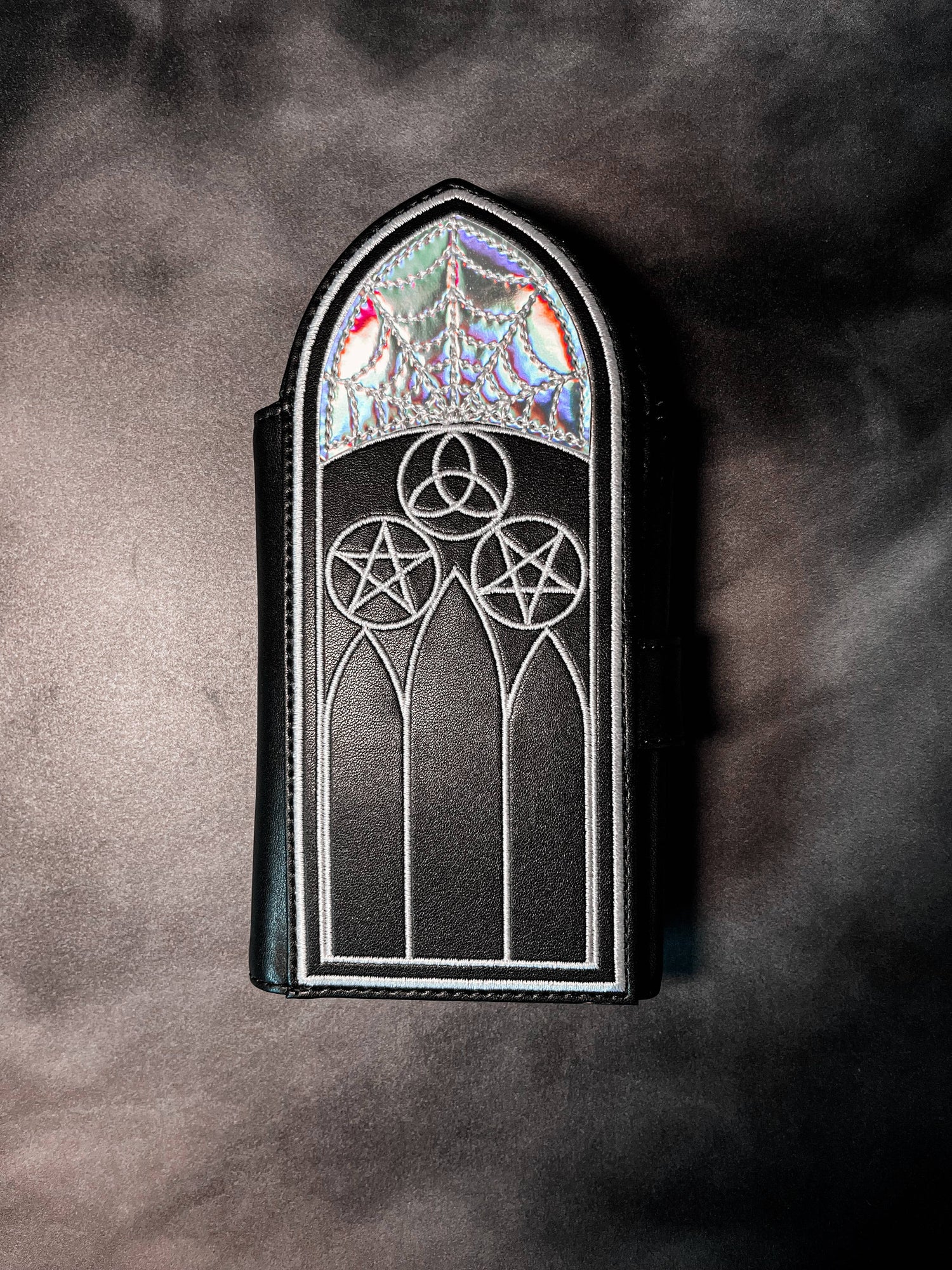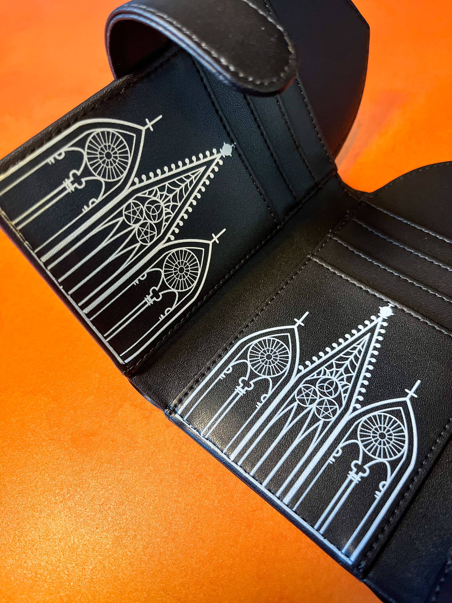 Where dark elegance meets practicality. Inspired by Gothic architecture, this wallet is adorned with intricate details. Crafted for those who seek both style and functionality, it's the perfect accessory to carry your essentials with a touch of witchy charm.