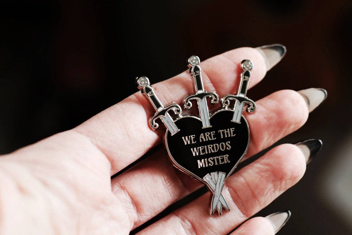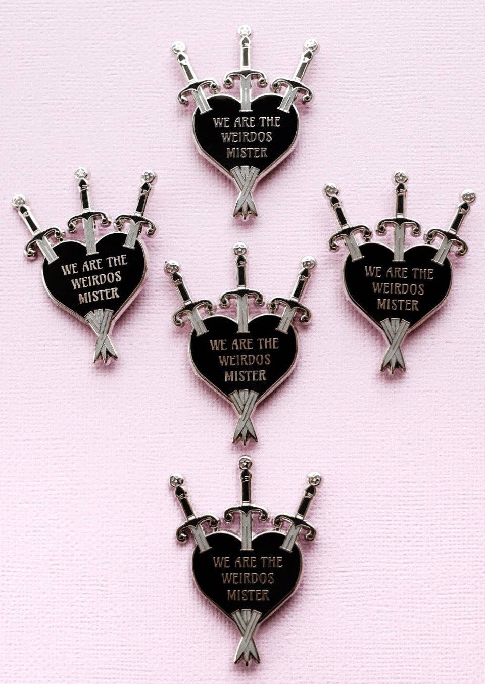 We ARE the weirdos mister. Lady Moon Co.'s 90's throwback x Three of Swords pin celebrates being witchy and being a weirdo.