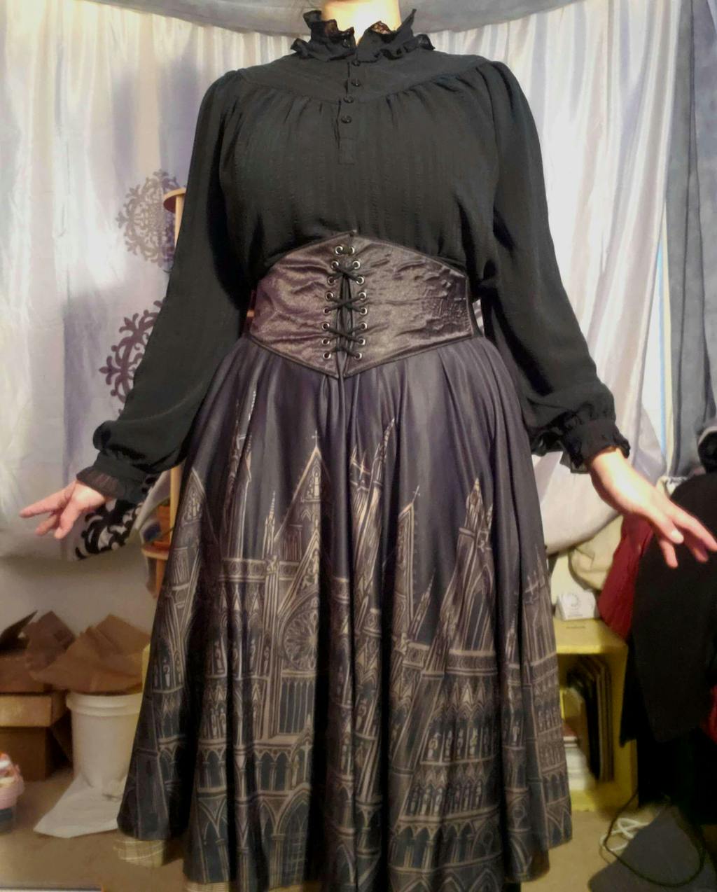 This is a soft, stretchy-waistbanded mid-calf skirt. Very flowy and elegant, this skirt is sure to impress! It has deep pockets that can fit a large phone or wallet.