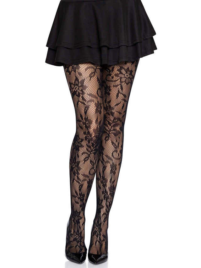 Add a little gothic romance to your wardrobe with the Chantilly floral lace tights by Leg Avenue.