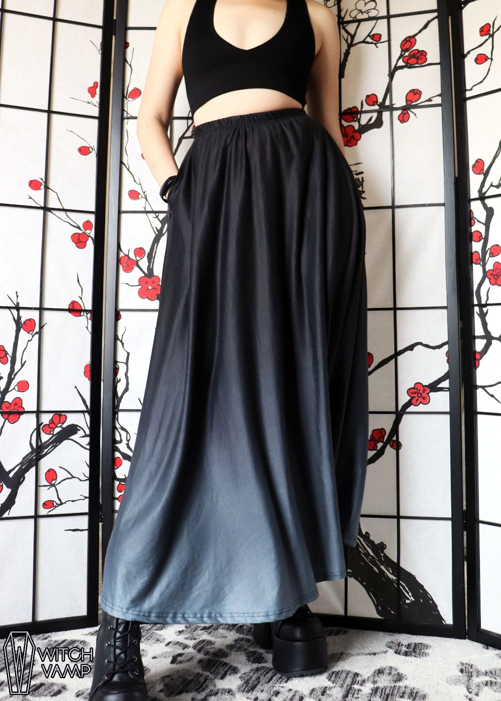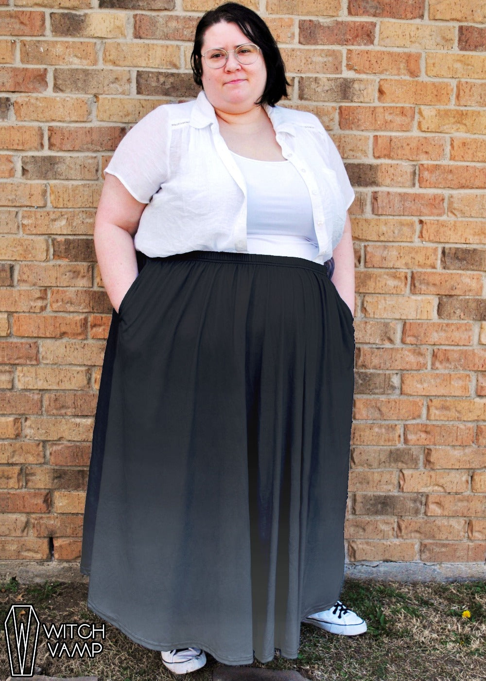 Elegant, yet comfortable. This extra long skirt makes a great addition to any wardrobe. It has deep pockets that can fit a large phone or wallet.