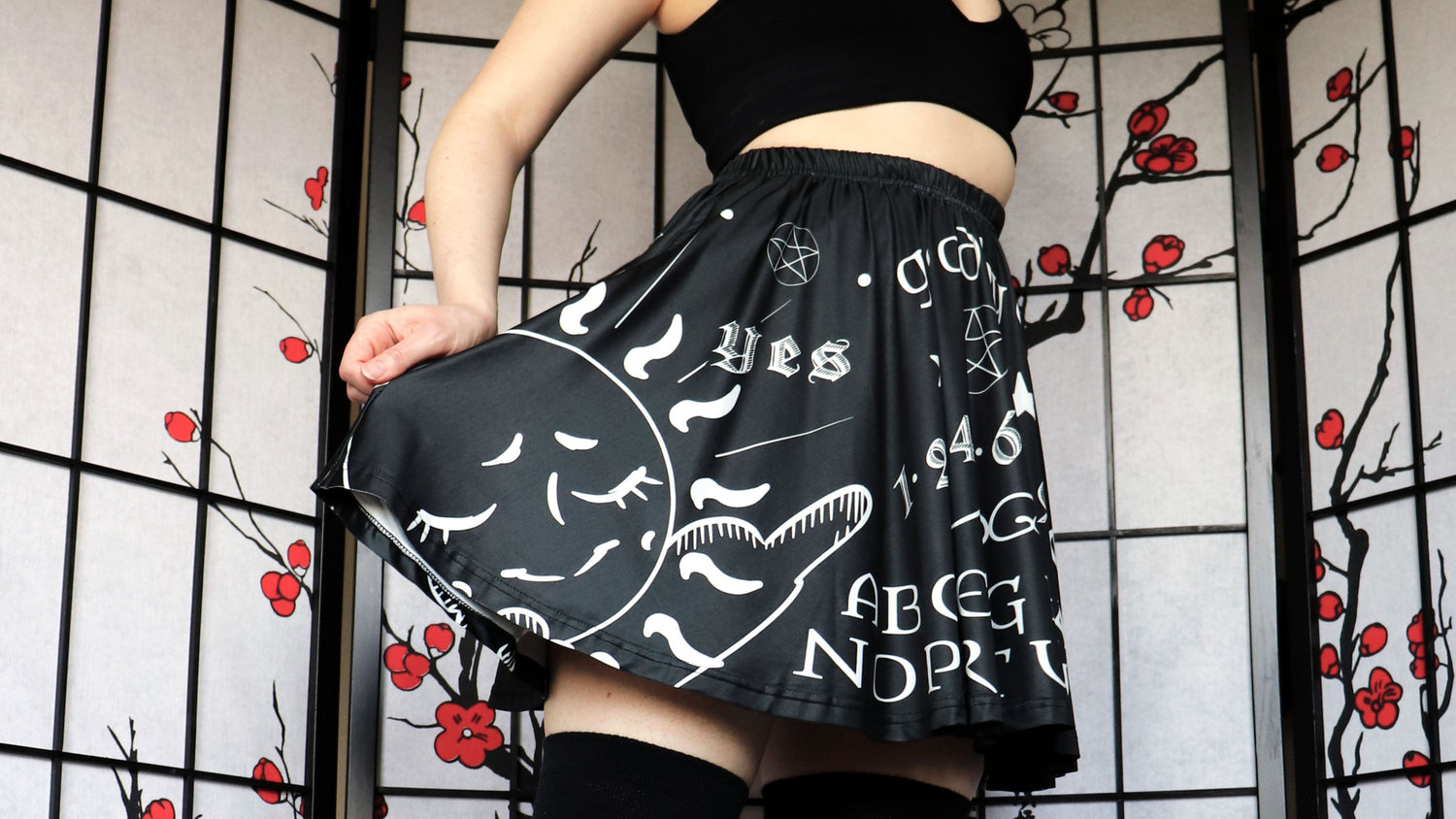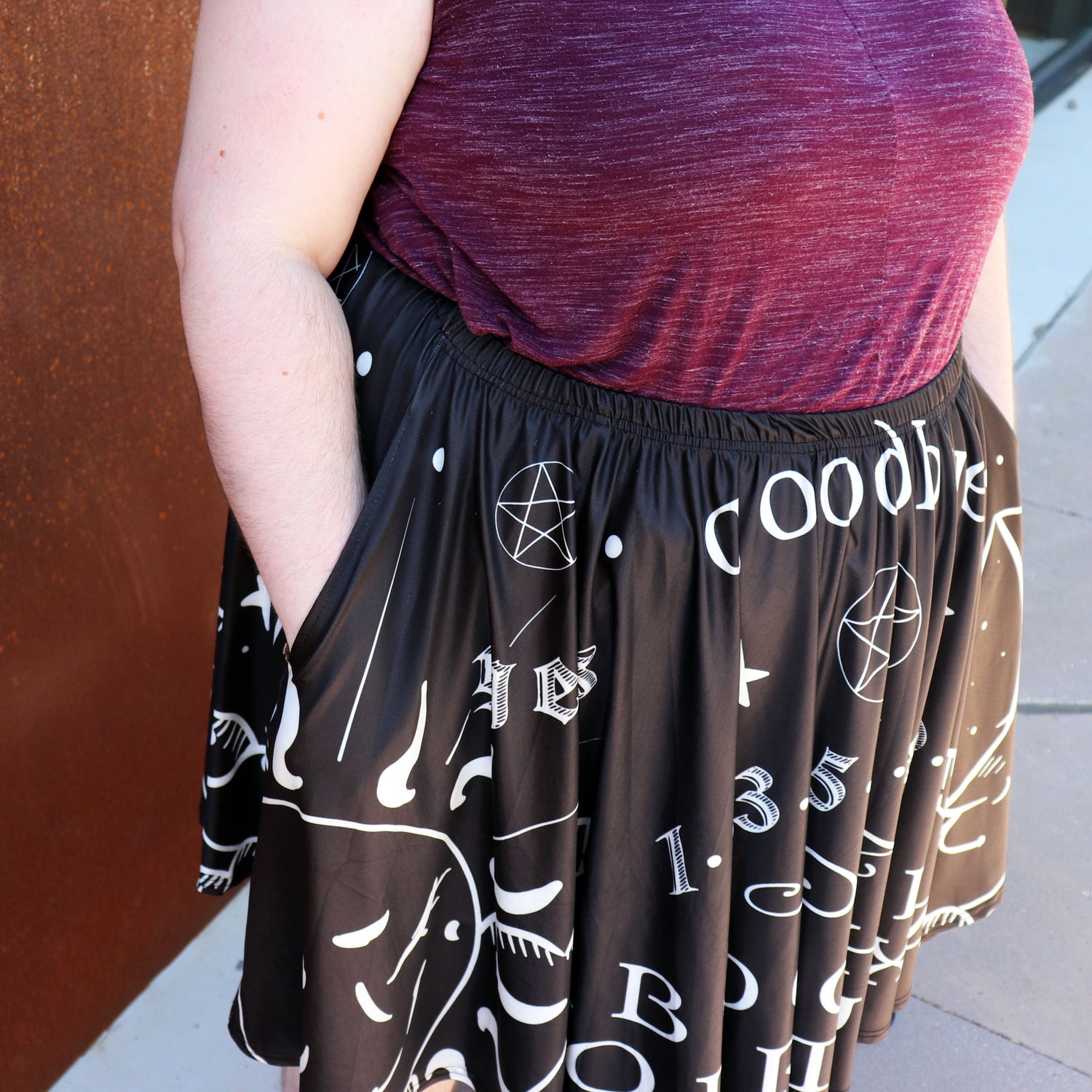 Ouija Board Skater Skirt With Pockets - A Size (XXS-MD) is backordered and will ship as soon as it is back in stock.