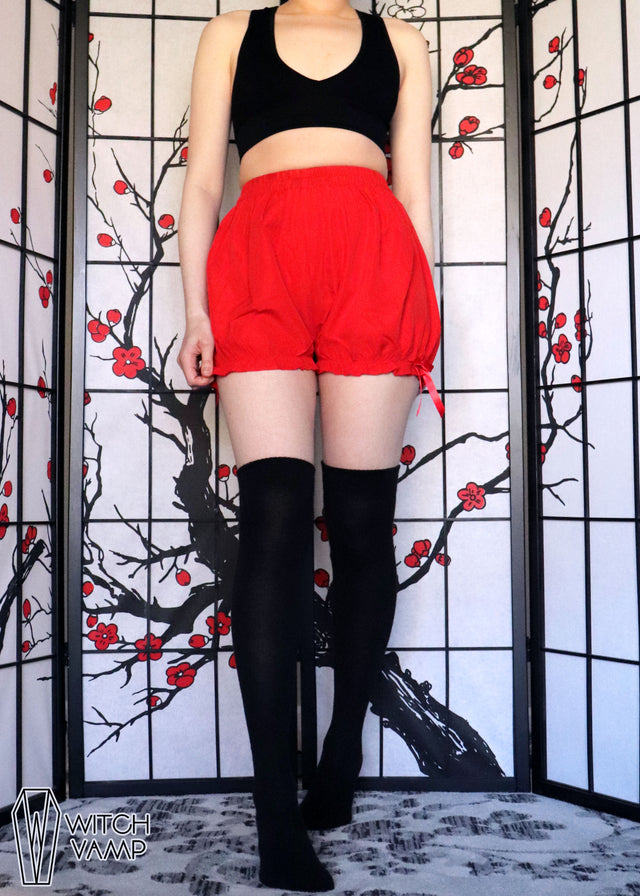 These Red Bloomers are the perfect addition to any cute goth's wardrobe. Comfortable and breathable, they also feature a versatile elastic waistband that ensures a perfect fit. Whether you're aiming for a bold fashion statement or seeking a unique addition to your intimates, these bloomers are an excellent choice. Enjoy the fusion of fun and functionality in your everyday wear.