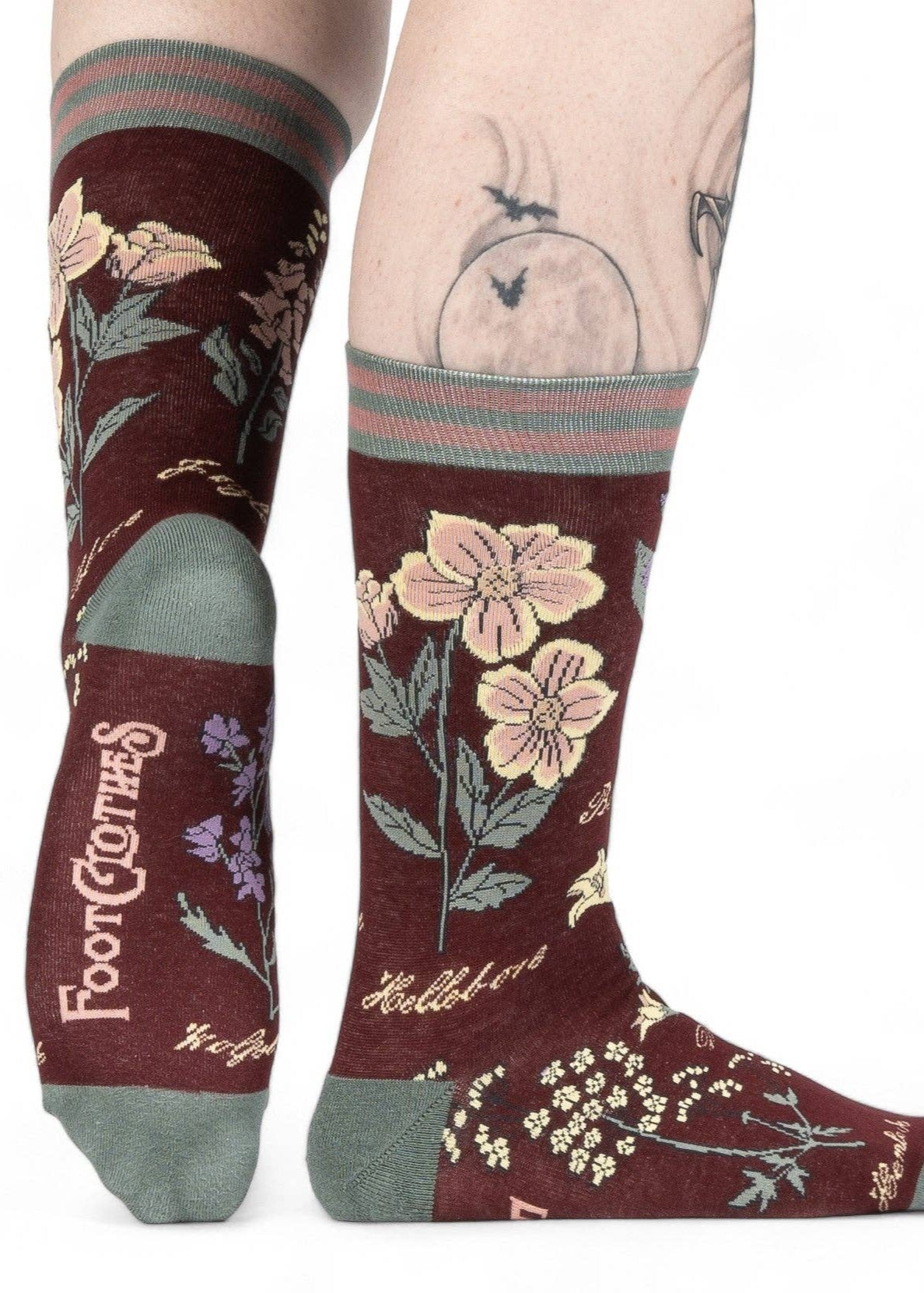 Flowers are beautiful, but many of them can also kill you or at least send you into a nightmarish realm of delirium and hallucinations (and then kill you). It's no wonder so many have been believed to have magical properties. These socks are a veritable garden of fearsome flora, including several of history's most famous perilous petals. This is probably the safest way to expose yourself to these lovely toxins without risking your life or inviting some seriously askance looks from your neighbors who grow normal things like roses. Still Gothic at least, we'll give them that.