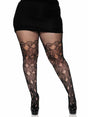 Black Floral Vine Fishnet Tights (One Size Plus)