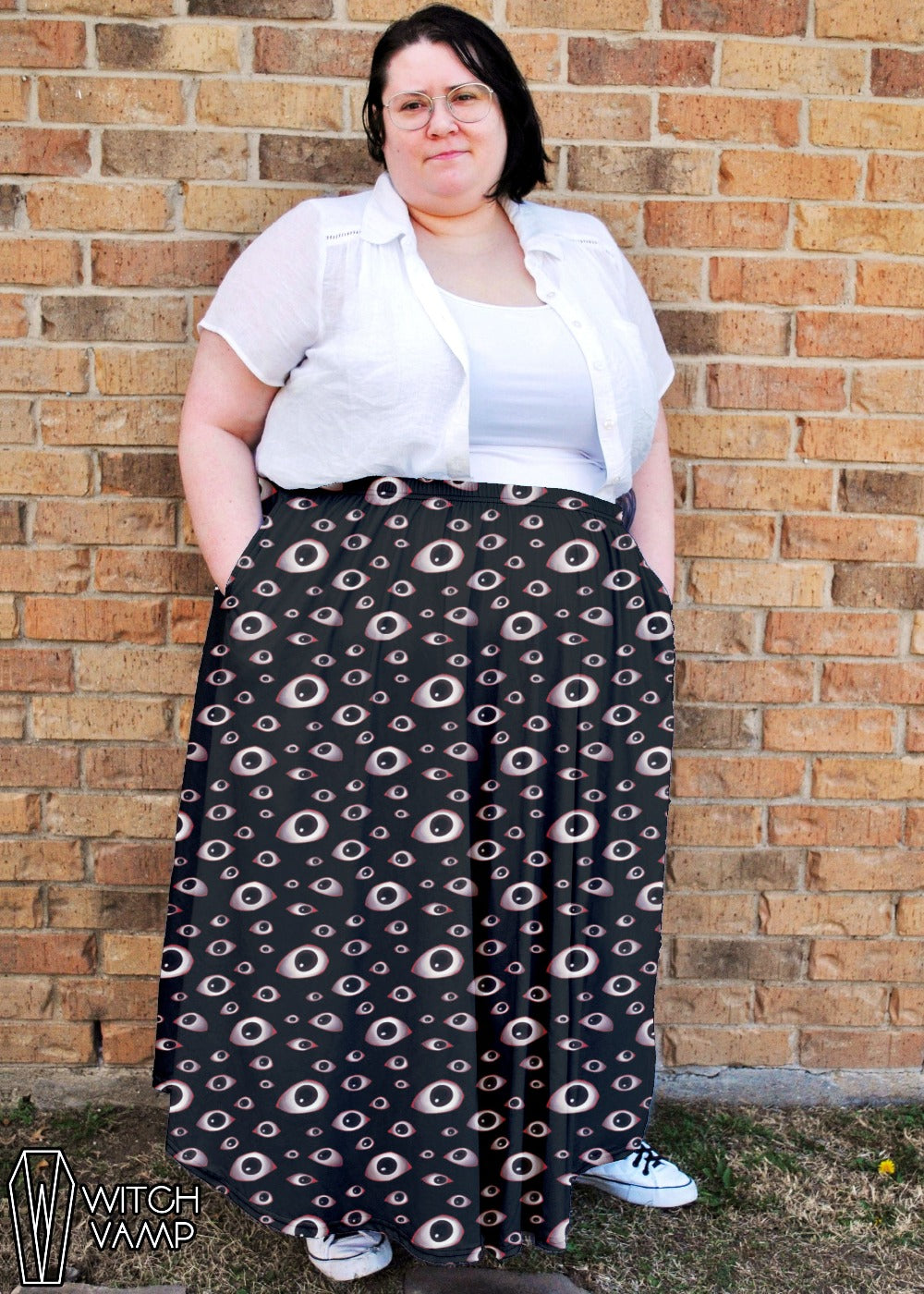 Creepy Eyes Maxi Skirt with Pockets - A Size (XXS-MD) is backordered and will ship as soon as it is back in stock.