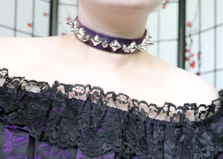 Purple Leather Collar with Chrome Spikes and Pyramid Studs