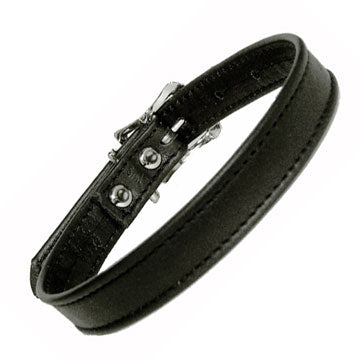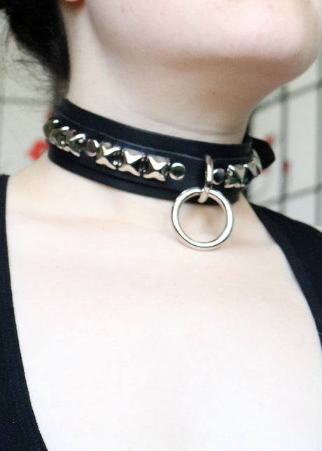 Black Leather Collar with Chrome Studs and Ring