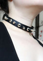 Black Leather Collar with Chrome Spikes and Round Studs - SM/MD is a PREORDER item and will not ship until we are ready for fulfillment.
