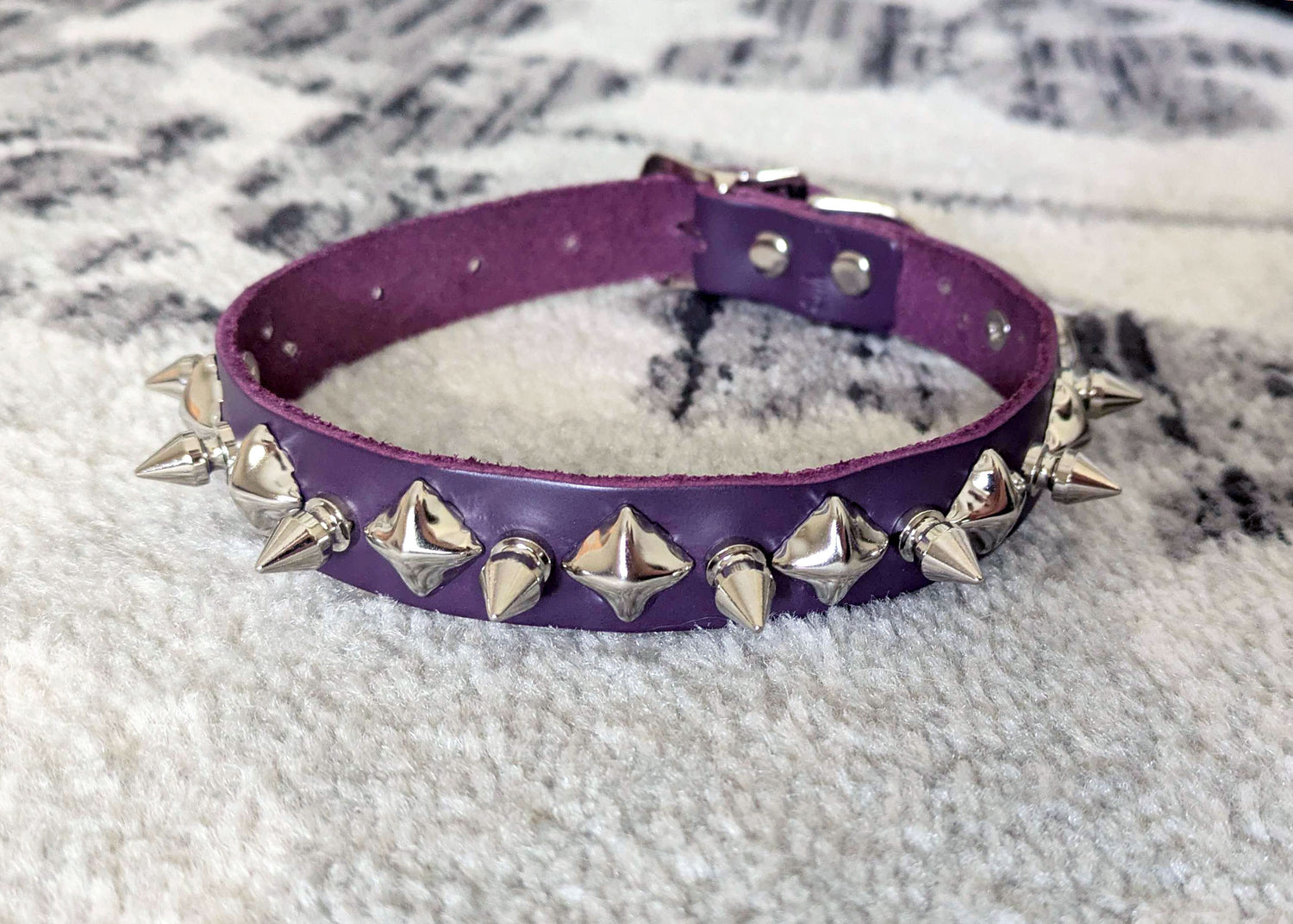 Purple Leather Collar with Chrome Spikes and Pyramid Studs