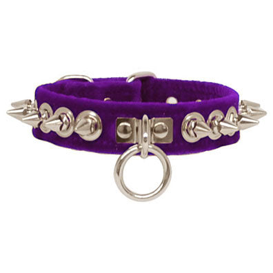 Purple Velvet Spike Collar with Ring - SM/MD is backordered and will ship as soon as it is back in stock.