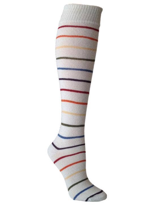 [Discontinued] White Light Rainbow Striped Knee High Socks