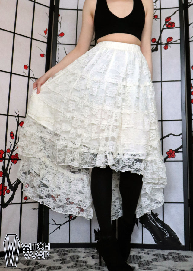 Ivory High-Low Lace Skirt - One Size is a PREORDER item and will not ship until we are ready for fulfillment.