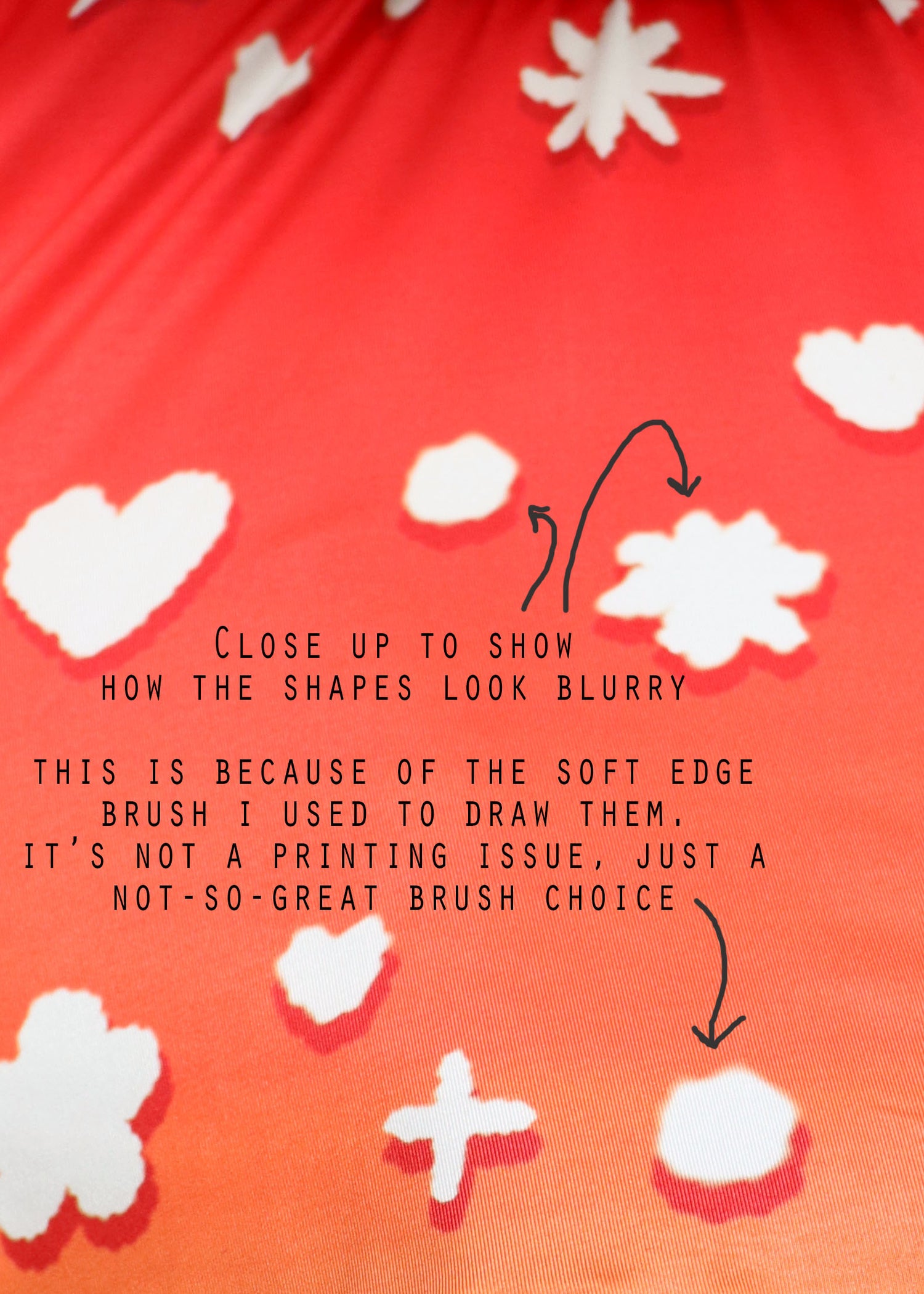 Amanita Design Note: This first batch of Amanita skirts is $20 off because the brush I chose to draw all of the spots with didn't quite print how I'd hoped. I wanted the spots to have a rough and organic look to them, like they had just happened to grow naturally as cute hearts and stars and such. They look fine from a distance and turned out with the general vibe that I wanted. But the brush I used has a bit too much of a soft edge, and up close the spots come across as having printed blurry, like it might have been from a print error (see last picture for details). In this case it's not an error in printing, just a poor choice on my part. I plan to redo this design using a different brush with a more crisp edge in the future! Otherwise the design will remain about the same as it is here.