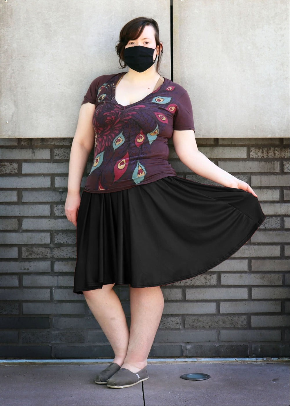 This soft, stretchy skater skirt will have you feeling perfectly cute and comfy. It has deep pockets that can fit a large phone or wallet.