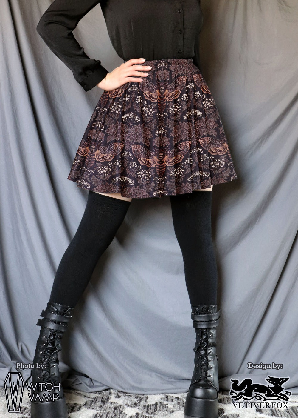 Death's Head Moth Skater Skirt with Pockets - A Size (XXS-MD) is backordered and will ship as soon as it is back in stock.
