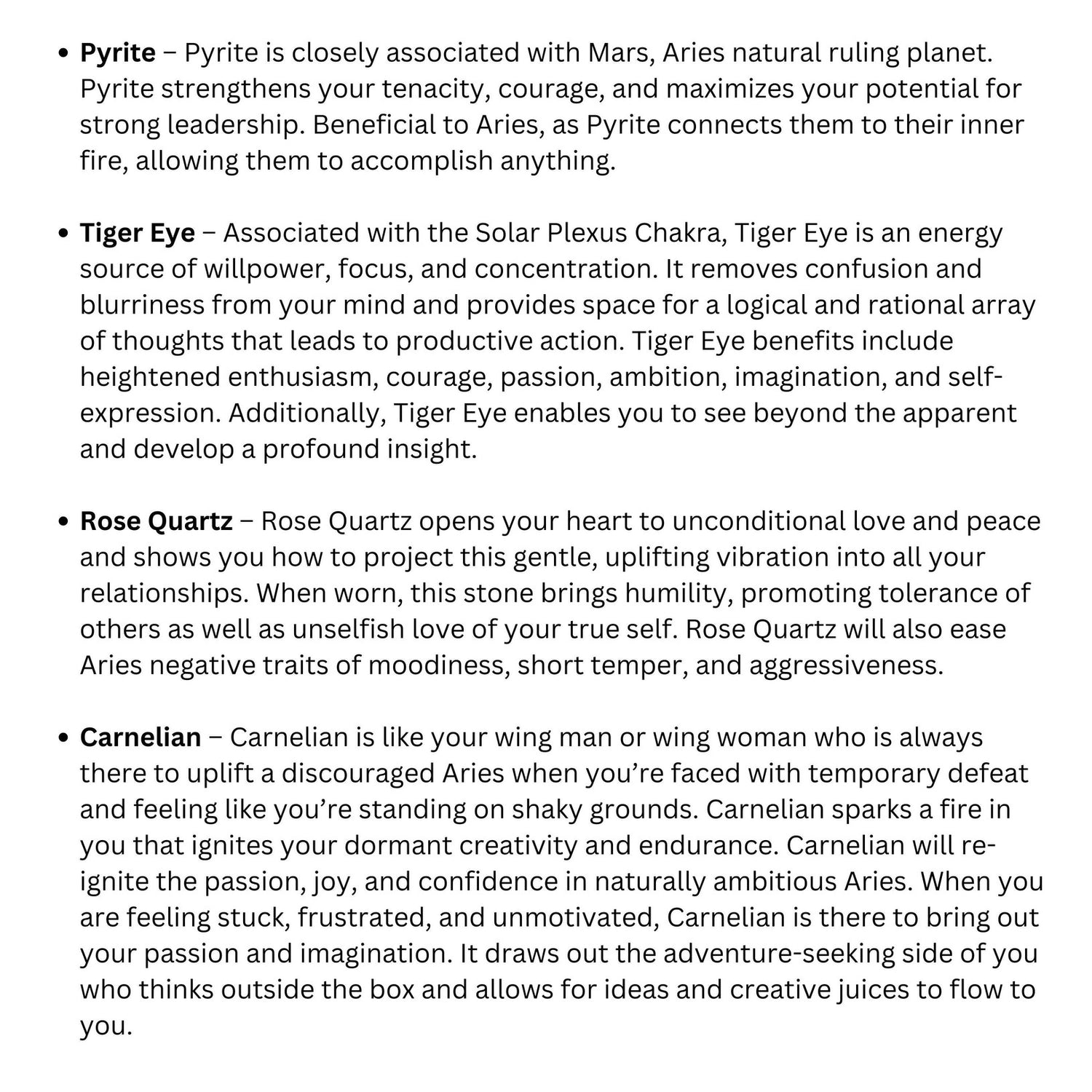 *All for fun! Let's not take this too seriously. Not meant to treat any condition or guarantee any particular benefit. The metaphysical properties listed are based on what has historically been connected to the meaning of the crystal.